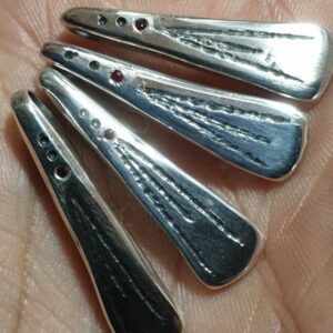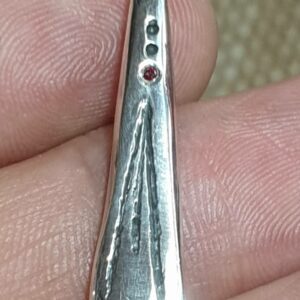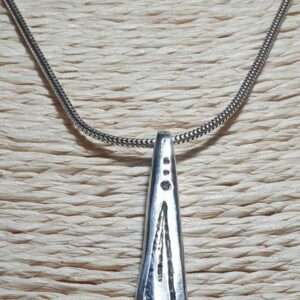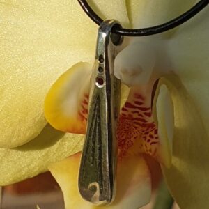 Le travail réalisé à mon atelier est 100% artisanal, le pendentif peut laisser apparaitre des traces de frappe (je pars d’un morceau d’argent et je le martèle à chaud), des traces légères de lime, bref, les petits défauts qui font de ce pendentif une pièce unique.