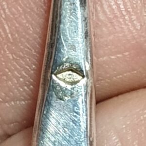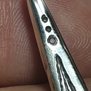 Ce pendentif possède une spécificité, comme il est le premier de la série, j’ai fondu une goutte d’or 18 carat au verso, sur laquelle j’ai apposé mon poinçon de fabricant (un sanglier celte, en complet accord avec le thème celtique de ce pendentif). Le poinçon de fabricant est une apposition obligatoire pour les bijoux fabriqués en France.