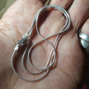 Ce petit collier argent 925, de type serpent, qui saura accompagner au mieux mes créations. Après de multiples essai, c’est uniquement avec celui-ci que je travaille. C’est avec ce type de collier que je photographie toutes mes créations.