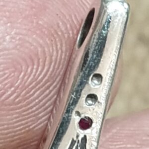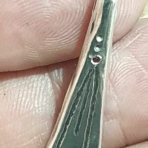 Sur un des trois points, gravés, j’ai serti un très petit rubis (1,3 mm) en serti massé.