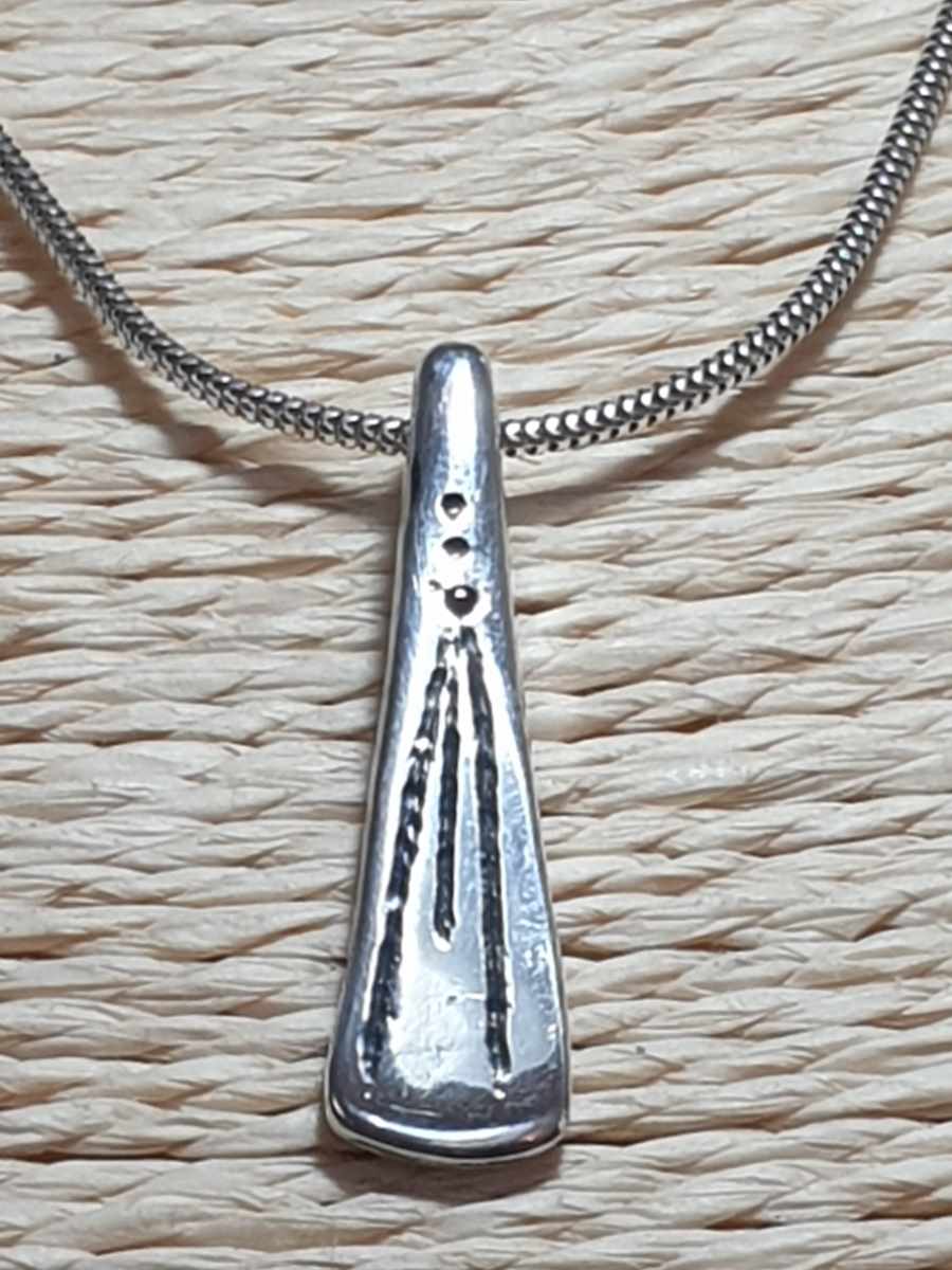 Ce petit pendentif, de forme et de symbolisme intemporels, sera livré sans collier, mais avec un trou large de 2mm, vous pourrez y passer le cordon de votre choix, cuir, argent, coton: tout lui va. (Vous pouvez trouver à ce sujet le même collier que celui de la photo, type ‘serpent’ en argent de longueur 40 ou 45 cm et diamètre 1,2 mm dans ma boutique).