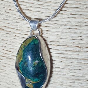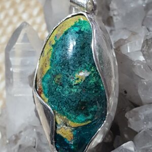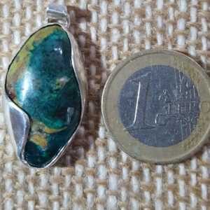 Pendentif en dioptase du Congo serti sur argent.