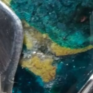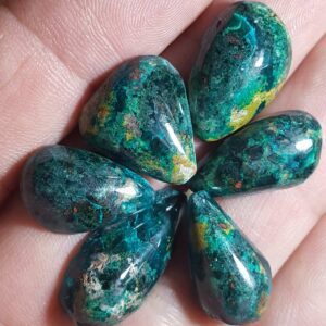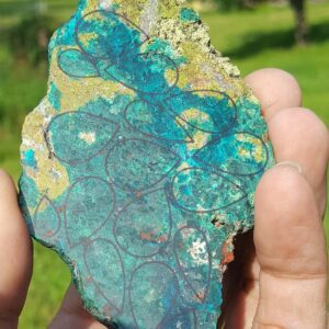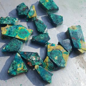 Cette magnifique pierre possède de multiples couleurs autre que le vert et ressemble à une petite palette de peinture.