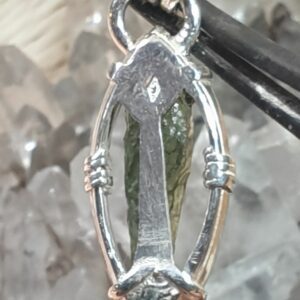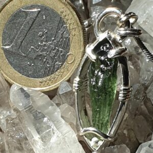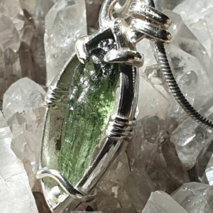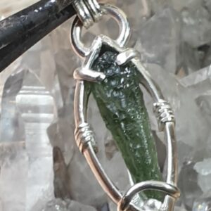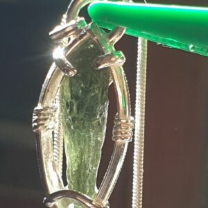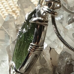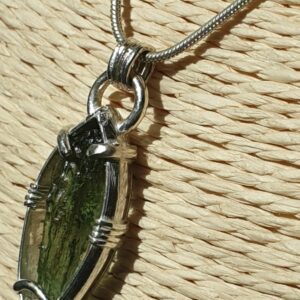 Pendentif en moldavite n°1Pendentif en moldavite serti sur argent 950 à mon atelier.